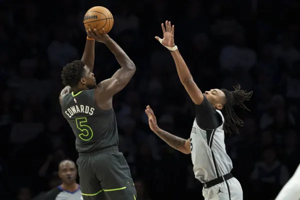 NBA - Opposé à Wemby sur la possession décisive, l'arrière des Wolves a hésité, puis a trouvé la solution pour inscrire le panier de la victoire.