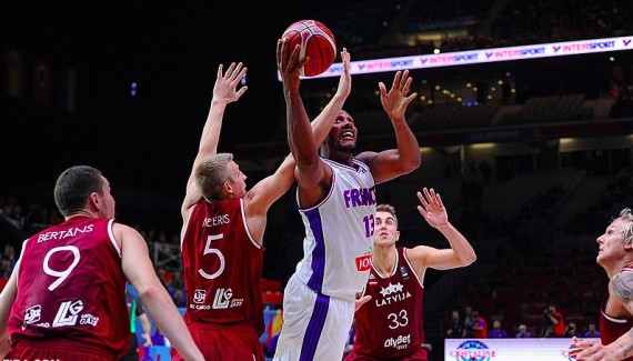 Honnêtement, je pense que l’équipe de France est un rouleau compresseur. Au début, elle laisse un peu de place à l’adversaire… Je rectifie : on est à la fois un rouleau compresseur et un diesel. On a un peu de mal à rentrer dans le bain et c’est vrai qu’on laisse beaucoup jouer l’adversaire, on fait beaucoup d’erreurs, on est un peu mou au début mais c’est comme s’il s’agissait d’une manière de préparer le match. On commence à monter au régime jusqu’au point où l’on asphyxie complètement notre adversaire et on voit qu’à la fin, les mecs d’en face ne peuvent plus marquer un panier. À l’approche du terme du match, les Lettons ne pouvaient vraiment plus. Finalement, il y a quand même eu un vrai travail de sape et il nous permet de gagner le match avec un vrai écart car les mecs ne pouvaient plus répondre à ce qu’on leur donnait.