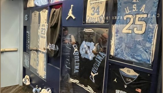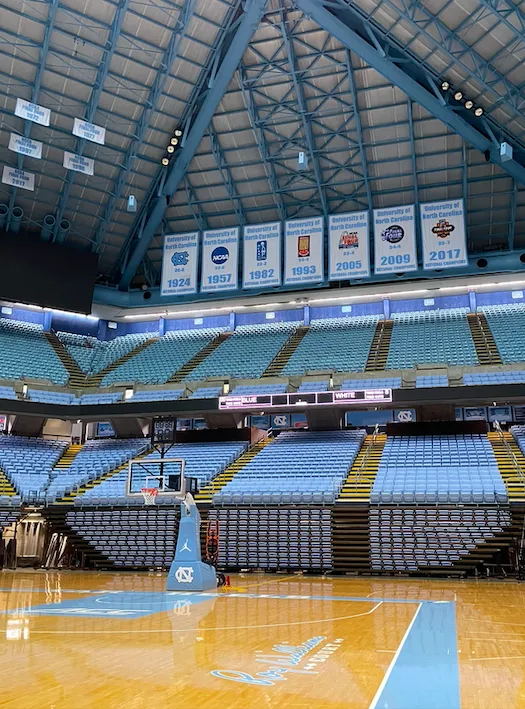 Après une journée à transiter entre Paris, Atlanta et Charlotte, la première étape de ce voyage inédit en France mène cette petite troupe non loin de Durham, et plus précisément à Chapel Hill, où se trouve la célèbre université de North Carolina (UNC). Avec laquelle Michael Jordan a remporté le titre NCAA, en 1982, aux côtés de James Worthy et Sam Perkins.