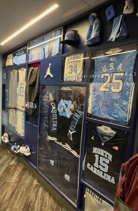 À l’intérieur, il y a logiquement de quoi contenter n’importe quel fan de basket NCAA et de UNC, qu’importe sa recherche, tant que ça ne concerne pas les fameuses chaussures de la gamme “Jordan” aux couleurs blanche et bleu ciel de l’université.