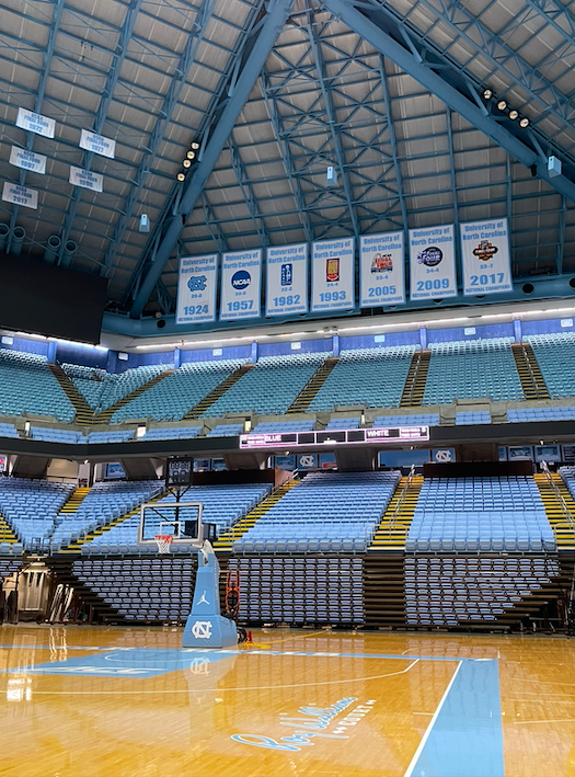 Très vite, tout le monde s’émerveille devant le prestige de cette enceinte, chargée d’histoire, où sont fièrement disposées au plafond une ribambelle de bannières. Bannières qui accompagnent les quelques maillots retirés par la fac, dont le N°23 de Michael Jordan, bien évidemment.