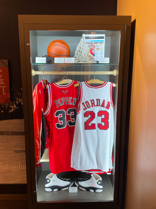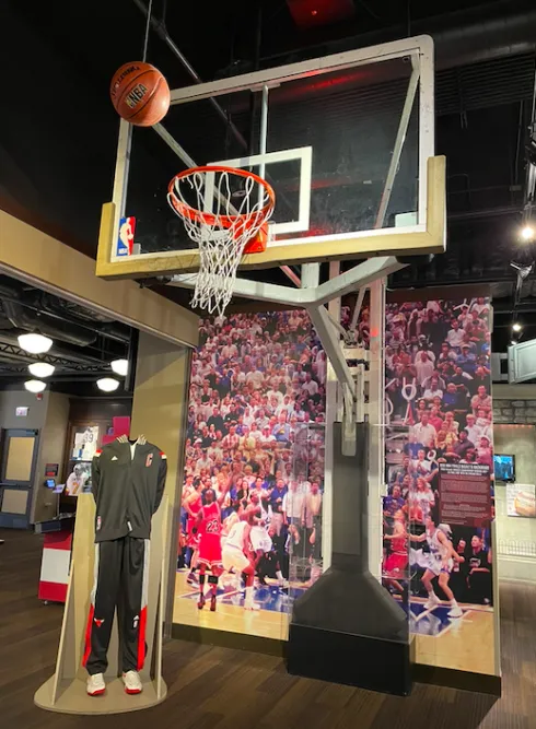 À l’intérieur, on y retrouve notamment le panier utilisé lors du Game 6 des Finals 1998, au Delta Center de Salt Lake City, qui avait vu le « Last Shot » de Michael Jordan y être inscrit. Sur le plan basket, « His Airness » est évidemment beaucoup mis en avant, au même titre que Scottie Pippen, Derrick Rose ou « Benny The Bull ».