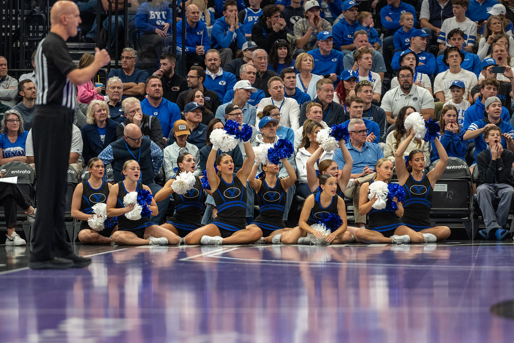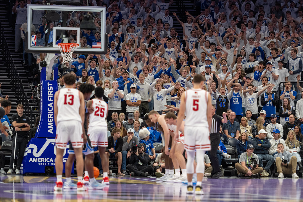 Le Delta Center est à peine 5 minutes en voiture. Je me gare vers 13h sur le John Stockton drive. Les fans des Cougars de BYU s’agglutinent déjà devant les portes de l’enceinte. En contournant la foule bleue avec ma valise photo, j’ai le sentiment que cette après-midi va nous offrir une rencontre pas comme les autres. Il flotte quelque chose de particulier dans l’air, dans les conversations d’avant match, dans le regard des fans, dans la quantité de caméras et de médias qui se pressent à l’entrée de la salle.
