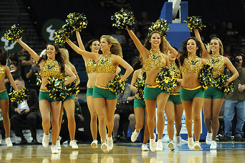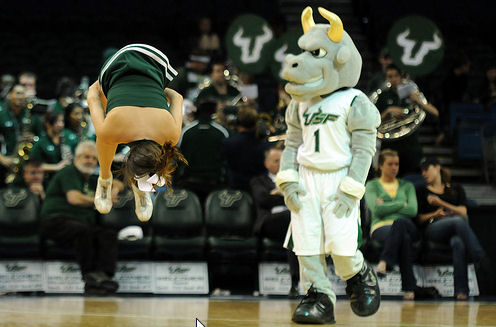Rocky le taureau, la mascotte des Bulls fait le show sur le parquet alors que les Sun Dolls, les danseuses d’USF agrémentent chaque temps mort de déhanchements suggestifs. Cerise sur le gâteau, une équipe mixte de Cheerleaders véritables gymnastes, propose au public de spectaculaires figures à base de portés et de vrilles. Le dispositif est impressionnant et mobilise une vingtaine de personnes pour l’ensemble des matchs de la saison joués à domicile.