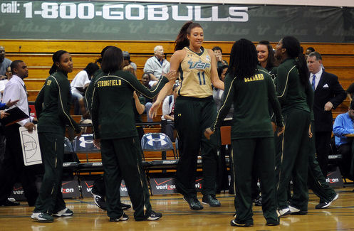 Pour rappel dans la hiérarchie des sports universitaire féminins, le Basket n’arrive qu’en troisième position derrière le Soccer et le Volley Ball. Notons tout de même que les filles viennent d’enchainer leur 4éme match en 5 jours et qu’elles n’ont pas vraiment montré de signes de fatigue même si l’effectif a pas mal tourné. Deux étrangères font partie du roster d’USF, l’australienne Caitlin Rowe qui joue Pivot et fait partie du 5 majeur alors que l’ukrainienne Inga Orekhova blessée a passé la rencontre sur le banc.