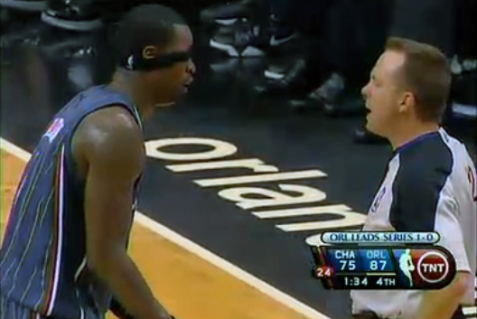 L’action se déroule à 90 secondes de la fin du Game 2 entre le Magic et les Bobcats. Stephen Jackson monte au cercle, et il est victime d’une faute de Matt Barnes. Les arbitres ne sifflent rien et pourtant, il y avait bien faute.