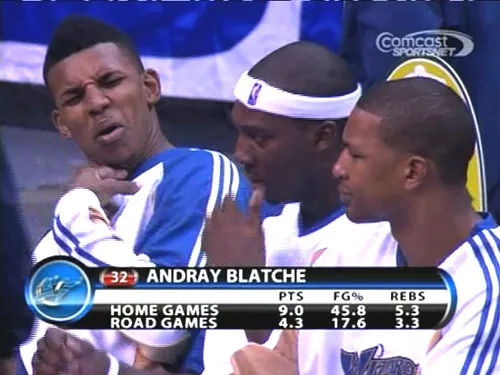 Nous sommes au début du troisième quart-temps au Verizon Center de D.C. Les Wizards reçoivent le Heat. Sur le banc, Blatche regarde le spectacle entouré de ses potes Nick Young et Dominic McGuire. Jusque-là, rien que du classique. Là où ça commence à devenir intéressant c'est quand Young, aux narines alertées par un scud contraire aux conventions de Genève, commence à tirer une tête de mort. Même Blatche se pince les narines, incapable de supporter sa propre flatulence.
