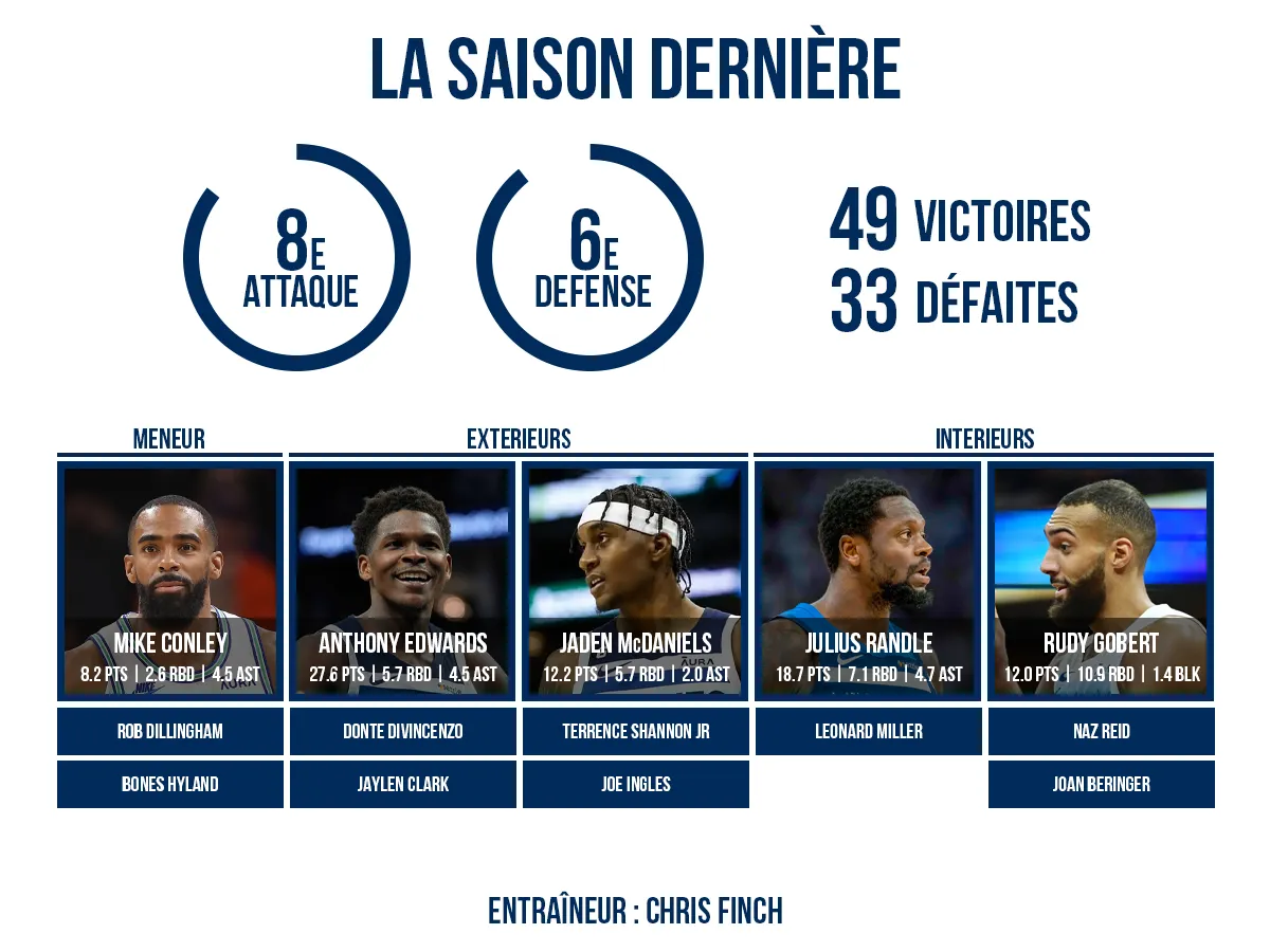 Seules quatre équipes ont terminé la saison dernière dans le Top 10 des meilleurs « Offensive » et « Defensive Ratings » : les trois ayant atteint les 60 victoires (Oklahoma City, Cleveland, Boston) et… les Wolves.