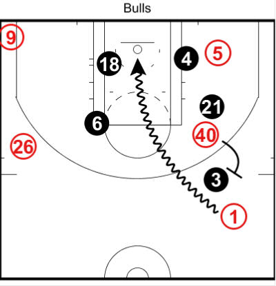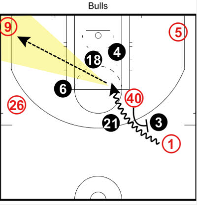 Environ 30 secondes plus tard, les Bulls vont refaire exactement le même système.