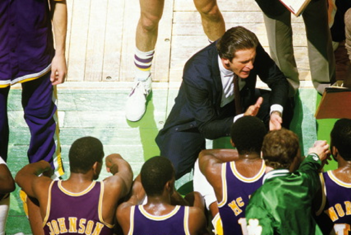 « C’est ma première Finale entre Boston et Los Angeles. J’étais arrivé un an plus tôt en NBA comme photographe. J’avais donc peu d’expérience. Lorsque le Match 5 a débuté à 21 h dans le Boston Garden, la température était de 37°. L’atmosphère était irrespirable ! Les joueurs et les fans buvaient litre d’eau sur litre d’eau. Tout le monde était trempé bien avant le coup d’envoi de la rencontre car il n’y avait pas de climatisation dans les salles à l’époque. J’ai pris cette photo depuis un balcon pour avoir une vue plongeante. Les Lakers écoutaient Pat Riley lors d’un temps mort. Riley était toujours très strict dans le choix de ses costumes, de ses chemises et de ses cravates. Il fallait que son look soit en permanence impeccable, même pendant un match. Tout devait rester parfait. Ce soir-là, à la fin du premier quart-temps, sa chemise dégoulinait de sueur… Il aurait pu la tordre et en tirer des centilitres d’eau tellement il suintait de partout. Il garda sa veste malgré cette chaleur insupportable ! Sur cette photo, on voit les cous de James Worthy et Mike McGee qui brillent tellement leur corps suinte. J’ai gardé une admiration et un profond respect pour Pat Riley qui m’a beaucoup aidé au début de ma carrière. Grâce à lui, j’ai pu effectuer mon métier de reporter photographe dans de bonnes conditions. »