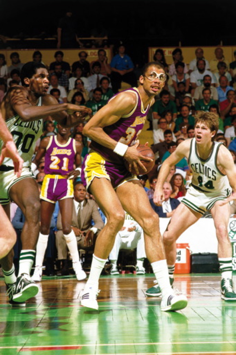 « Cette photo de Kareem Abdul-Jabbar est prise dans la préparation du mouvement qui a fait sa réputation, le skyhook. On lit de la détermination dans le regard de Kareem et de l’inquiétude dans celui de Danny Ainge.