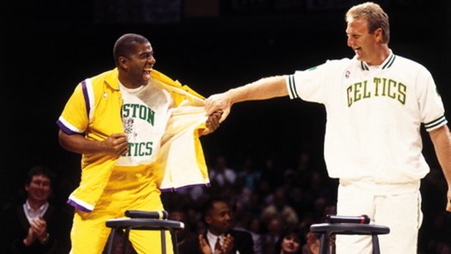 1993 : « Larry Bird découvre Magic avec un T-shirt des Celtics »