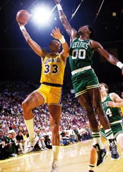 1986 : « Robert Parish en défense sur Kareem Abdul-Jabbar »