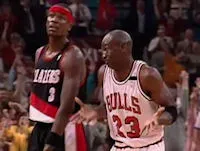 Six fois consécutivement, le n°23 des Bulls trouvera la cible derrière la ligne à 3 points, ce qui constitue également un must. L’image de Michael se tournant vers la table de marque et levant les bras en signe de surprise s’imprime dans toutes les rétines. Il terminera la soirée avec 39 points (16/27 dont 6/10 à 3 pts), 3 rebonds, 11 passes et 2 interceptions.