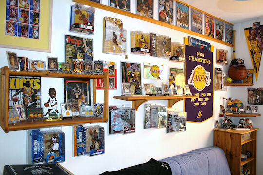 JEAN-PAUL : J’y pensais déjà avant de faire construire ma maison vu les pièces de collection que j’avais amassées… Comme beaucoup de collectionneurs, j’aimais les photos publiées par le magazine « Beckett » dans la rubrique « Collectionneur du mois ». J’ai donc décidé d’aménager une pièce pour en faire un mini-musée des Lakers.