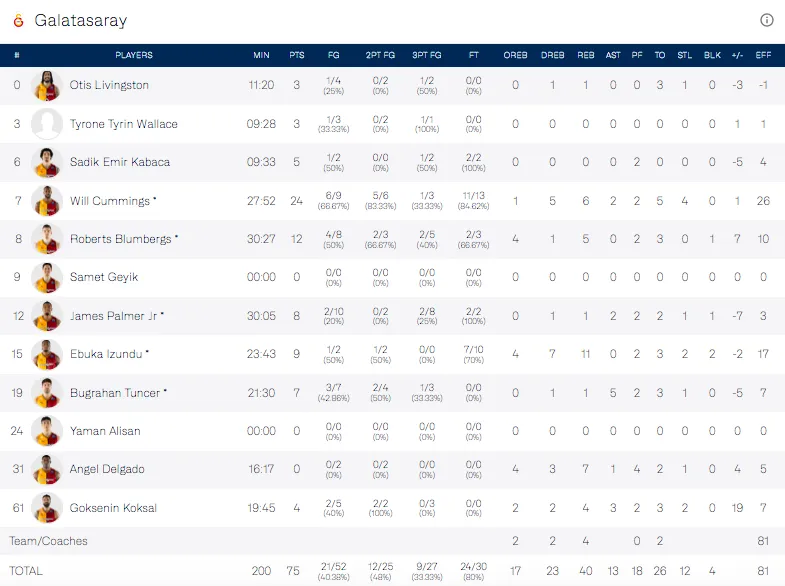 Malheureusement pour Saint-Quentin, ça n'a pas suffi, le club français ayant payé son début de match compliqué, la domination turque sous le cercle (40 rebonds à 26) et des dernières possessions approximatives, alors que le jeune meneur ratait l'ultime layup de l'égalisation qui permettait à Galatasaray de passer au tour suivant (75-73).