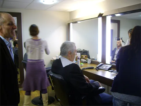 20h25. George arrive enfin. Comme l'émission est à l'antenne dans 32 minutes, le briefing n'attend pas et il est fait alors que les deux consultants se font maquiller. George en profite pour lâcher un mot gentil pour le site.
