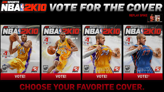 Parallèlement à l’annonce du partenariat avec Kobe Bryant sur NBA 2K10, 2K Sports invite les fans à voter pour choisir le visuel officiel du packaging. Un site dédié propose, à partir de maintenant et jusqu’au 15 juin, une sélection de 4 visuels différents. Le visuel qui aura reçu le plus de voix à la fin de la période de votes sera dévoilé le 16 Juin.