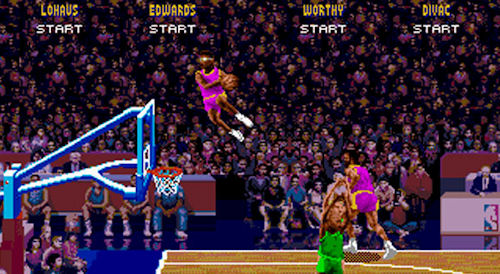 Pour les plus jeunes qui ne connaîtraient pas ce jeu, NBA Jam, c’est du 2-contre-2 sur tout terrain, et c’est apparu en 1993 sur Megadrive et Super Nintendo, avec aussi une carrière sur des bornes dans les salles de jeux. A l’époque, il fallait choisir des duos comme Larry Johnson-Alonzo Mourning, Shawn Kemp-Gary Payton ou encore John Starks-Pat Ewing.