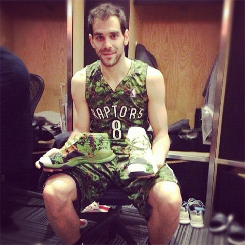 Demain, à l’occasion de leur soirée de soutien aux forces armées canadiennes, les Toronto Raptors arboreront un superbe maillot camouflage face aux Chicago Bulls. Jose Calderon a d’ailleurs mis ses chaussures au diapason. Peut-être que ça aidera les joueurs de Dwane Casey à mieux défendre leur cercle.