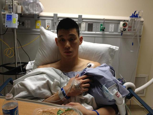 Jeremy Lin a bien compris qu’il devait une partie de sa célébrité soudaine aux réseaux sociaux, et c’est sur Facebook qu’il a posté une photo de lui, sur son lit d’hôpital, après son opération du genou (déchirure d’un ménisque).