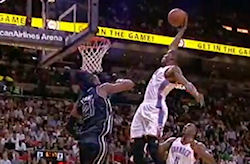 Mais la compétition est féroce avec aussi Russell Westbrook qui décolle au-dessus d’Omer Asik, ou encore Kevin Durant face au Heat.