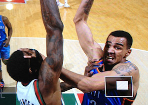 L’intérieur des Bucks a ainsi posté sur Twitter un cliché où l’on voit bien que Thabo Sefolosha lui met la main sur le visage pour mieux lui dunker dessus.