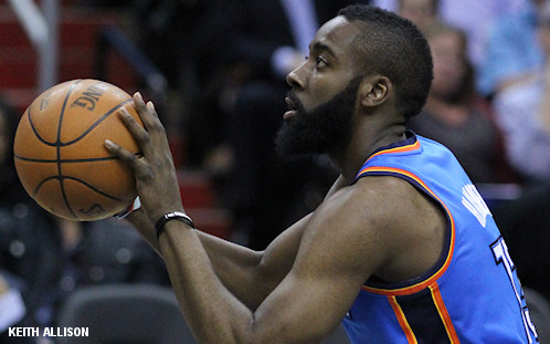 On le sait, James Harden est un candidat tout désigné pour le titre de meilleur sixième homme de la saison avec ses 16 points de moyenne en sortie de banc. Le gaucher barbu, formé à Arizona State, est tout simplement le facteur X d’une équipe du Thunder qui vise la bannière, ni plus ni moins !