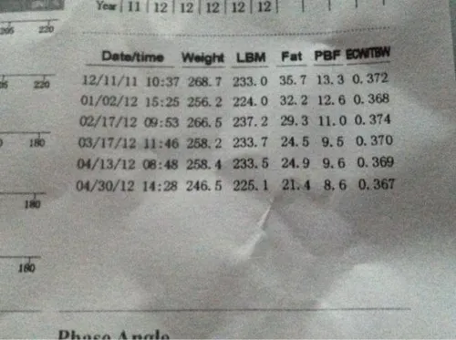 On constate ainsi que l'ailier des Lakers pesait 122 kilos en décembre avec un taux de graisse de 13%.