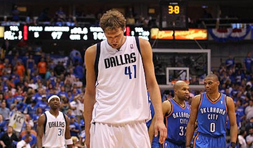 Malgré 34 points de Dirk, le champion en titre a bien été balayé par le Thunder (103-97), et il n’y a pas grand-chose à ajouter. L’escouade de Scott Brooks est montée en puissance dans la série, ne manquant pas l’occasion de terminer la série dès ce soir, et ce d’autant que Perkins va devoir récupérer de sa blessure.