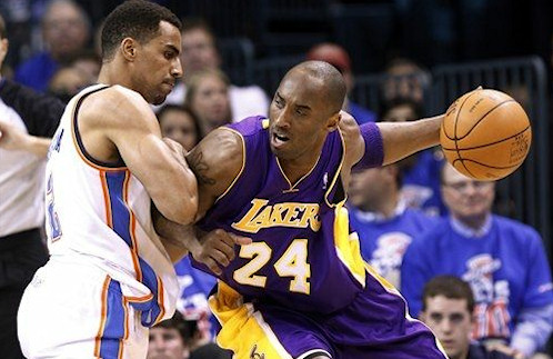 Dos au mur, les pourpres et or savent qu’ils n’ont plus le droit à l’erreur. Kobe Bryant commence donc la partie en mode prédateur. Il renifle toutes les pistes et se faufile pour inscrire 7 points rapides. Mais si Westbrook prend déjà une technique, le Thunder ne se démonte pas et revient à coup de dunks, mais surtout au terme d’un jeu de passe bien huilé. Thabo puis Durant sur un alley oop remettent les locaux en tête (12-11).