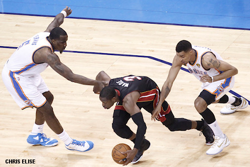 LeBron manque un tir en périphérie et le Thunder a une balle de match. Durant s’en charge mais échoue sur un tear drop en ligne de fond. Les zèbres ne bronchent pas, et Miami s’envole vers la victoire (100-96).