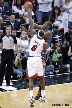 Mais le Thunder s’est tétanisé. Kevin Durant n’arrivait pas à se débarrasser de l’ombre encombrante de LeBron James et l’attaque d’Oklahoma City pataugeait dans l’à peu près et les solutions douteuses. De son côté, Miami assurait sa fin de match avec sang froid et l’expérience des Finales (91-85).