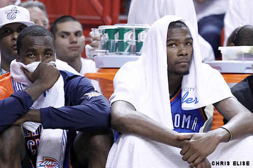 Kevin Durant en pleurs, des visages fermés et une immense déception. Après avoir éliminé les Spurs, le Thunder pensait peut-être avoir fait le plus dur. Ils se sont heurtés à la défense de Miami et échouent aux portes du titre.