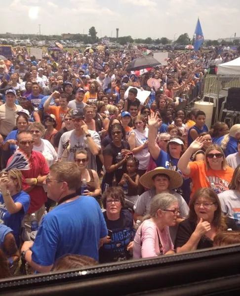 Ils ont peut-être perdu la Finale NBA, mais pas leurs fans. Le Thunder est ainsi arrivé à l'aéroport d'Oklahoma City vers 14h, heure locale, alors que 4 000 supporters les attendaient. Les joueurs sont alors montés sur une scène temporaire afin de parler à leurs supporters.