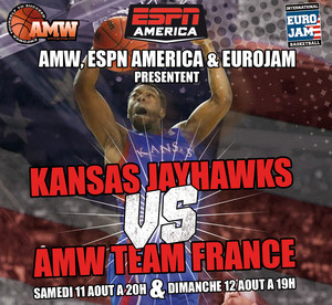 Partenaire de l’Euro Jam Paris 2012 et du camp AMW Group, Basket USA vous rappelle que les rencontres entre l’université de Kansas, finaliste du championnat NCAA (avec la présence du super lycéen Perry Ellis), et l’AMW Pro team auront lieu au Stade Pierre de Coubertin, et non plus à la Halle Carpentier.