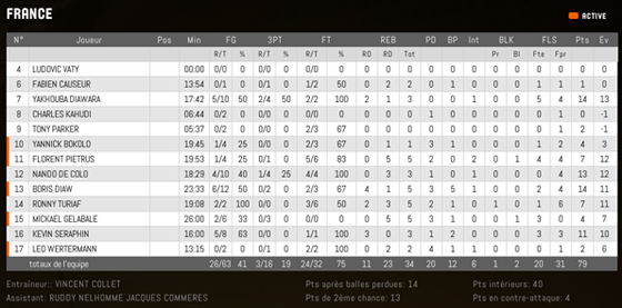 De son côté, Séraphin fait admirer la qualité de ses mains en réussissant des petits hook-shots dont il a le secret. Plus rien n’arrête alors les Français qui remportent cette rencontre 79-74.