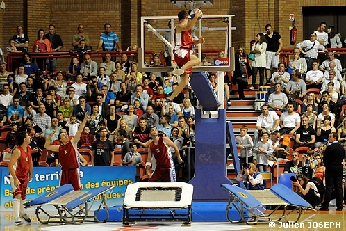 Malgré la défaite des Bleus, ou plutôt la victoire des Belges, il en reste de belles images. Notamment grâce au Crazy Dunkers que l’on retrouvera aussi aux Jeux olympiques puisqu’ils seront chargés d’animer les rencontres avec leur show de haute voltige.