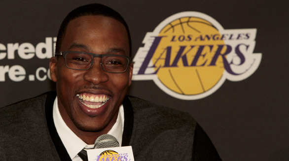 C’est à 20 heures, vendredi, à la salle d’entraînement des Lakers de Los Angeles que Dwight Howard a enfin été présenté à la presse aux côtés de Mitch Kupchak.