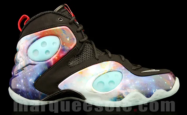 Cet hybride qui rend notamment hommage à Penny Hardaway est de retour dans un coloris “Galaxy” qui, cette fois, ne nécessitera pas une panne de courant pour briller par son originalité. Nike avait déjà offert le traitement étoilé à la Foamposite.