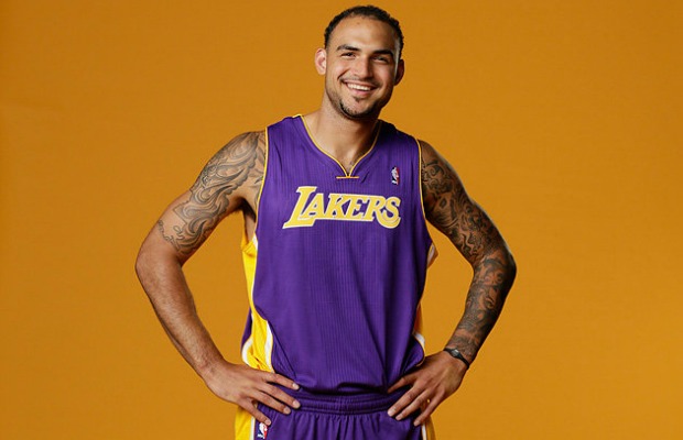 Ce rookie, c’est Robert Sacre. Intérieur canadien drafté en 60ème position par les Lakers. Et s’il n’a pas de numéro, c’est tout simplement parce qu’il avait prévu de porter le n°12 sauf qu’entre temps, Dwight Howard est arrivé et a demandé à conserver le 12 qu’il portait déjà à Orlando.