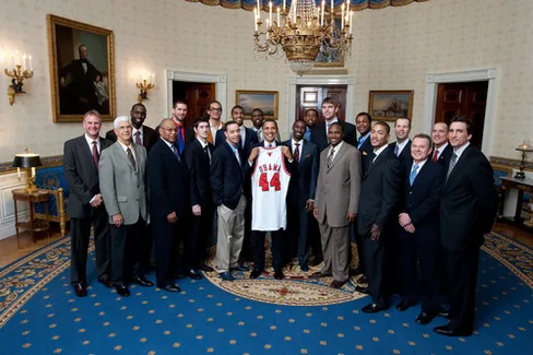 Ce n'est un secret pour personne, le premier président afro-américain du pays est un grand féru de basket. Un site Web, Baller-In-Chief, relate même l'actu basket du “Commander in Chief”. Pendant sa campagne, Obama prenait toujours le temps de faire un petit match avec son beau-frère, coach à Oregon State en NCAA. Chicagoan et fier de l'être, l'ancien sénateur de l'Illinois est tellement accroc à la balle orange qu'il est en train de transformer le court de tennis de la Maison Blanche en terrain de basket. Il a d'ailleurs invité les Bulls qui le souhaitent à revenir dans la capitale cet été pour quelques pick-up improvisés avec lui. Derrick Rose en est resté sur baba. “Rien que le fait qu'il connaisse mon nom m'a rendu tellement fier. Mais il connait tout de l'équipe, c'est un vrai fan“.