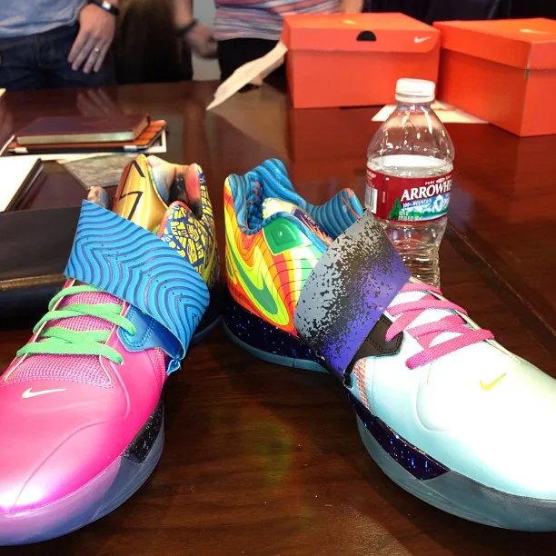 La KD IV “What the KD ?” reprend des éléments visuels d'une grande partie des éditions spéciales de la KD IV sorties ces derniers mois. Pêle-mêle, on retrouve des morceaux des coloris “Weatherman”, “Year of the Dragon”, “Scoring title”, “Gold Medal“, “Aunt Pearl” et “Galaxy.”