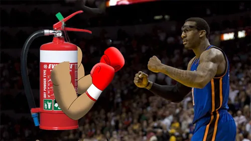 Lors de la série de playoffs 2012 face à Miami, Amar'e Stoudemire s'agace après le deuxième match. Dans les couloirs, il voit un extincteur dont il pense la paroi en plexiglas et y donne un coup de poing. C'est en fait du verre et l'intérieur des New York Knicks se coupe et doit se faire poser des points de suture.