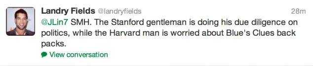 Les deux anciens potes des Knicks, Jérémy Lin et Landry Fields, n’ont eux pas raté l’occasion de s’envoyer des petites piques pour entretenir la guerre des clochers traditionnelle entre leurs glorieuses Alma Mater (Harvard et Stanford respectivement).