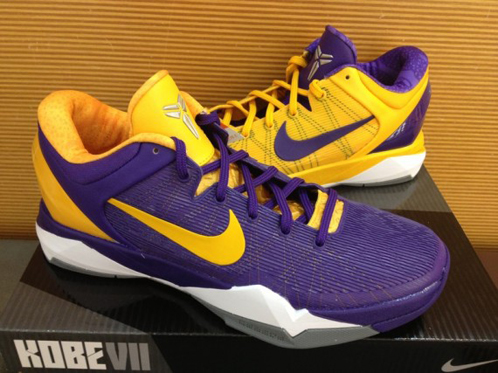 Contre les Warriors, le Black Mamba a porté l’édition “Snake Pool” de la Kobe VII. Une édition sur laquelle la première chaussure est jaune avec des touches de violet, et inversement sur l’autre chaussure.