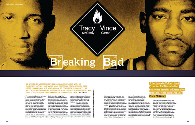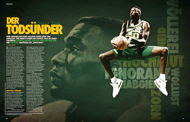 Cela dépend souvent d’un petit élément. Ça peut être le titre de l’article, le joueur, son surnom ou s’il a quelque chose de spécial. Par exemple avec Dennis Rodman, on va partir sur quelque chose d’un peu fou. Ça peut être aussi la photo, on m’envoie une base avec plusieurs choix, si elle est belle ou s’il y a des couleurs intéressantes. Ça peut être aussi l’article puisque je reçois d’abord les papiers puis je réfléchis à la mise en page. Principalement, je trouve mon inspiration en regardant d’autres magazines ou des sites, des blogs sur internet.