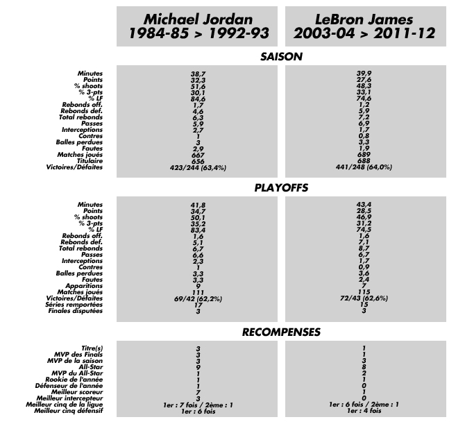 “Ces comparaisons sont très difficiles à faire. Je ne pense pas qu’on pourra les comparer tant que LeBron James n’aura pas terminé sa carrière. Spéculer maintenant permet d’avoir des conversations intéressantes. Ils sont tous les deux géniaux. Bien sûr, ce qu’a fait Jordan est tout simplement incroyable mais qui sait ? LeBron réalise une belle carrière et il est encore jeune”.