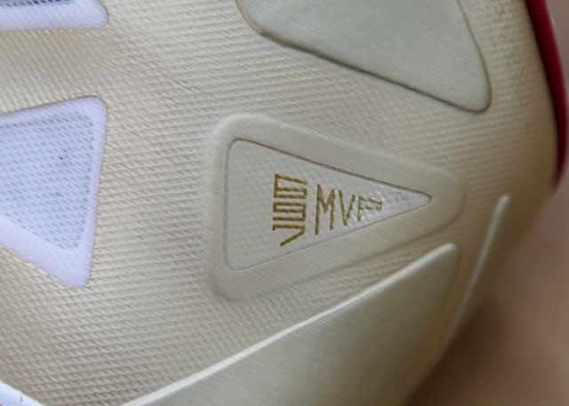 Le MVP est entré sur le terrain dans une version “Ring Ceremony” de sa nouvelle signature. Une chaussure dorée avec des accents aux couleurs du Heat.