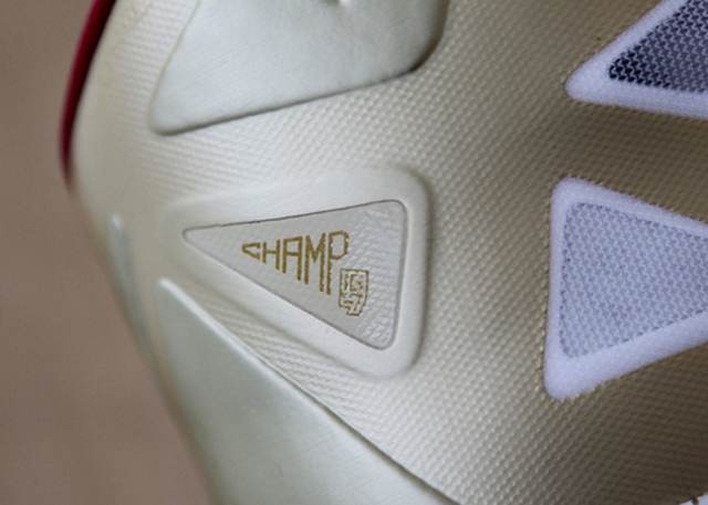 Du côté des petits détails, il y a l’inscription “MVP” et le nombre de points marqués par James en playoffs l’an dernier sur le côté droit. À gauche, toujours dans la police utilisée sur les bagues, il est écrit “Champ” et le bilan de Miami en playoffs.